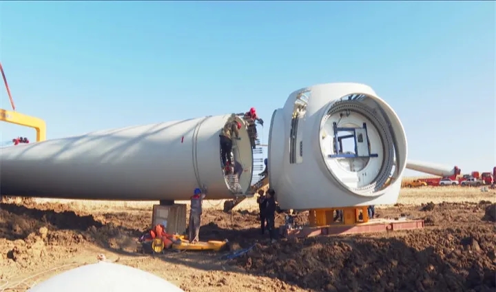 項目建設現場分布在東昇鄉、蓮花鎮、恭六鄉。這3個鄉鎮具有豐富的風資源,空氣密度適宜,適合項目施工建設。在東昇鄉項目建設現場,一個個風力發電機組傲然挺立,項目共計建設風力發電機組33個,目前已經安裝23個。風力發電機組吊裝工作和昇壓站一次二次設備安裝和調試工作正在如火如荼進行。全站總體項目進度完成85%,計劃12月末可全部完工。