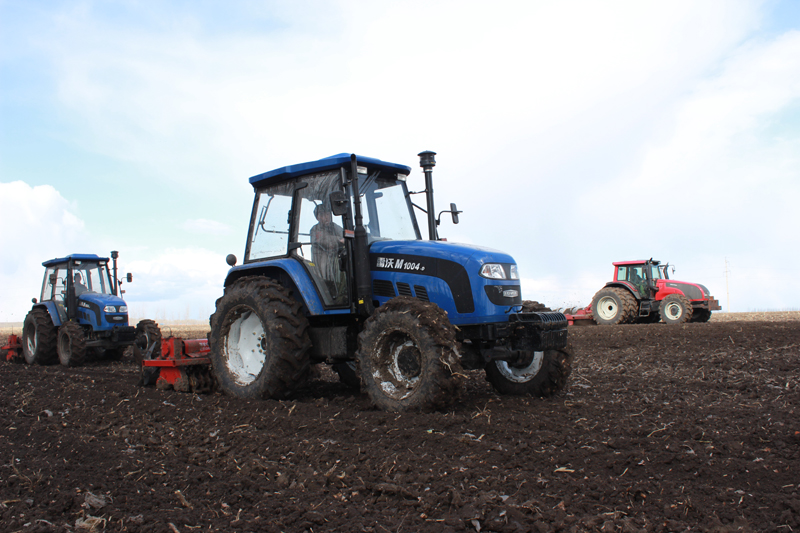 11月5日,在望奎縣先鋒鎮華瑞玉米種植合作社田地裡,幾臺大型機械正在進行秋整地。