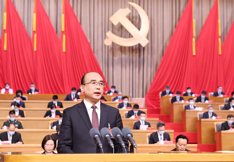 ——五年來,我們堅定扛起全面從嚴治黨政治責任,黨的建設持續加強。始終堅持黨的全面領導,把黨的政治建設放在首位,『兩學一做』學習教育常態化制度化、『不忘初心、牢記使命』主題教育、黨史學習教育取得明顯成效,廣大黨員乾部踐行『四個意識』、『四個自信』、『兩個維護』更加堅定自覺。樹立正確選人用人導向,市縣鄉領導班子換屆圓滿完成,乾部隊伍建設持續加強,基層黨組織政治功能和組織力凝聚力不斷提昇,人纔隊伍建設取得新進展。中央巡視反饋問題整改全部完成,巡視巡察實現全覆蓋。『四風』頑疾得到有效糾治,腐敗問題得到有力查處,一體推進不敢腐、不能腐、不想腐取得明顯成效,反腐敗斗爭取得壓倒性勝利並全面鞏固,全省政治生態持續好轉。