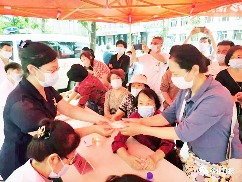 簽約儀式後,省中醫藥科學院與市中醫醫院的醫療專家在市中醫醫院門前進行了義診,共診治脾胃病等病患50多人,為10餘名群眾粘貼三伏貼,發放由省中醫藥科學院專家攜帶的防暑香囊300餘個。