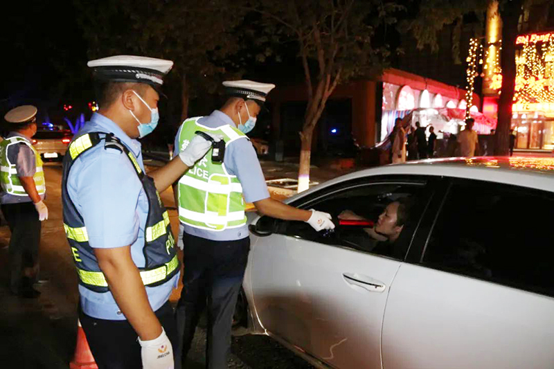 交警大隊結合夏季酒駕醉駕違法犯罪規律特點,科學設置臨檢點位,按照『逢車必檢、逢違必糾』的原則,嚴格查驗過往車輛,重點查處酒駕醉駕、無證駕駛、未佩戴安全頭盔、未系安全帶等交通違法行為,有效預防道路交通事故發生,保障轄區道路交通安全暢通。
