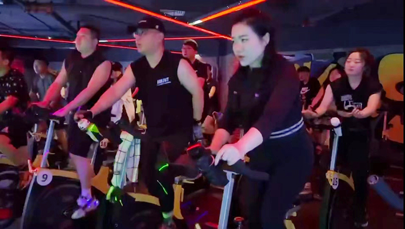 動感的燈光、充滿節奏感的音樂,再配上教練為學員們鼓勁的叫喊聲,上完操課的張先生正在動感單車上加速運動,盡管已經大汗淋漓,他還是堅持了10多分鍾,纔停下來休息。一邊用毛巾擦汗一邊對記者說:『騎上一會兒動感單車,出一身汗,感覺身體立刻放松了很多。』
