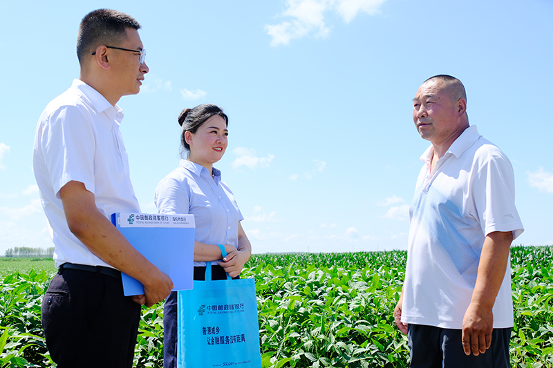 同時,為進一步優化整體作業時限,郵儲銀行信貸團隊通過移動展業的方式,將信貸系統由網點遷移至客戶家中進行現場受理及放款,免去客戶往返辦理業務的不便,真正做到送貸下鄉、進村、入戶,在業務辦理次日,一筆300萬元的備春耕資金便成功發放至潘河賬戶。就這樣,包地、買農資、購置新設備,備春耕時期的潘河忙得不亦樂乎,50多歲的他較年輕人相比一點不落下風,大豆種植規模也由2021年的1350畝擴大到今年的3000畝。潘河對前來開展貸後檢查的信貸客戶經理說:『有了你們的支持,我們今年一定還會是個豐收年!』