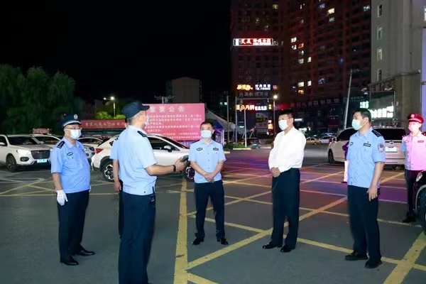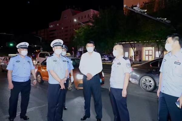 8月13日晚,綏化市公安局黨委委員、副局長張國輝深入肇東市公安局檢查督導夏夜治安巡查宣防集中統一行動開展情況,並看望慰問一線執勤民警輔警。肇東市副市長、公安局黨委書記、局長王顯剛參加督導檢查。
