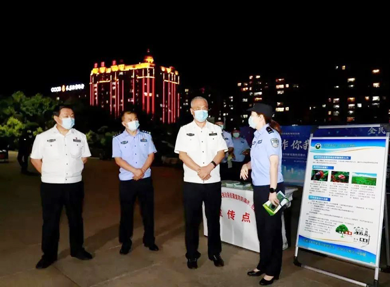 在人民廣場,孫沿國詳細了解了廣場警力部署、巡邏防控等情況,並實地查看了夜查夜巡行動集中宣防點,查閱了宣傳資料,聽取了宣防工作開展情況匯報,對取得的宣傳成效給予肯定。他要求,開展夜查夜巡集中統一行動,是應對夏季復雜治安形勢的必然要求,是深化『百日行動』的重要舉措,要嚴格落實社會面整體防控各項機制和『1、3、5分鍾』快速反應機制,最大限度把警力擺上街面、擺到人員密集區域,切實推進打、防、管、控各項工作,及時打擊查處現行違法犯罪活動,有效防范清除各類安全風險隱患。要組織開展好夜查夜巡行動集中宣防活動,讓人民群眾全面了解夏季治安打擊整治『百日行動』重要意義,以群眾容易接受的方式開展反電詐、反盜竊、防溺水、防火災、拒酒駕、拒賭毒等內容的安全宣防,不斷提昇人民自覺守法意識和自我保護能力,切實營造保安全、護穩定的濃厚社會氛圍。