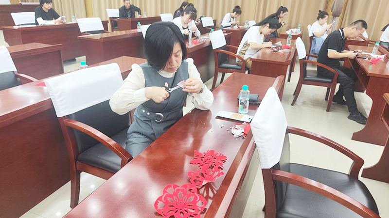 活動現場,省勞動模范劉卓向現場的勞動模范及市總工會職工們傳授非遺剪紙技藝,從折疊到剪法,劉卓都耐心講解,勞動模范們通過學習將手裡的紙張剪成一片片雪花的形狀。
