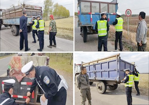 工作中,海倫市公安局交警大隊組織警力在海倫入城口、國省、縣及通鄉(村)公路等重要路段向農機駕駛員宣傳道路交通安全知識。民警與他們用嘮家常的方式談身邊發生的交通事故,闡明無證駕駛、酒後駕駛、超載、違法載人等交通違法行為的危害性。對農用車輛無反光標識、反光標識褪色的車輛發現一輛,教育一起,粘貼一輛,並教育村民們切勿超員、超速、疲勞駕駛,真正做到預防和減少交通事故的發生。