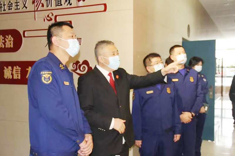 在機關黨委專職副書記李雪松帶領下,全體消防救援人員先後參觀了審判法庭大廳、法警辦公室、訴訟服務中心、訴調對接中心等場所,詳細了解了各場所的功能作用,並在第六審判庭旁聽了一起刑事案件的庭審。