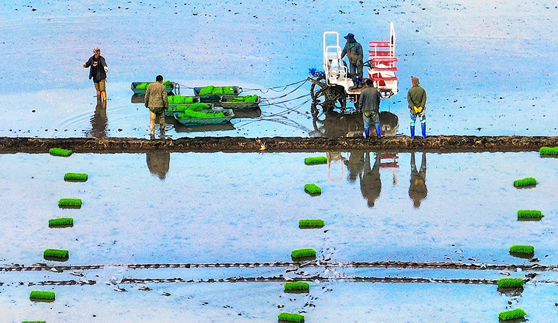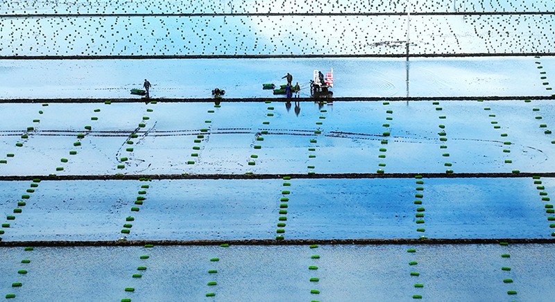 農家少閑月,五月插秧忙。『中國寒地香米之鄉』——綏化市北林區,處處都是繁忙的插秧景象。在秦家鎮盛昌種子種植繁育基地,人工和機械相結合,一塊塊田字格映襯著翠綠的秧苗,煥發著現代農業的勃勃生機。