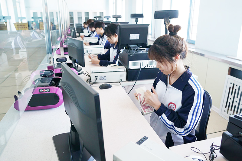 記者在學校的計算機應用教室、計算機網絡實訓室、錄播室、銀行事務實訓室、舞蹈形體實訓室、電子實訓室等,拍攝學生在課堂實訓瞬間。