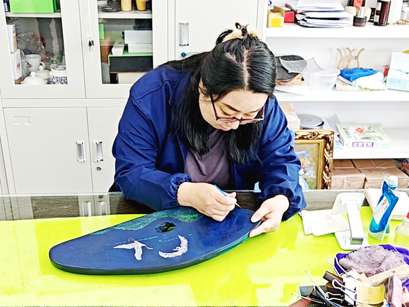 2019年,綏化學院藝術設計學院與特殊教育學院合作,成立工作室,讓學習藝術的聽障生也參與進來。2020年,黃志欣正式把漆藝技術工藝創新創業工作室成立起來,與聽障同學們完成了很多作品。這些年,她對聽障生進行教學中也總結了許多心得,雖然這些孩子溝通能力比較弱,但是他們在技藝的學習和文化底蘊的鑽研上都非常認真,每個人身上都有一股韌勁。