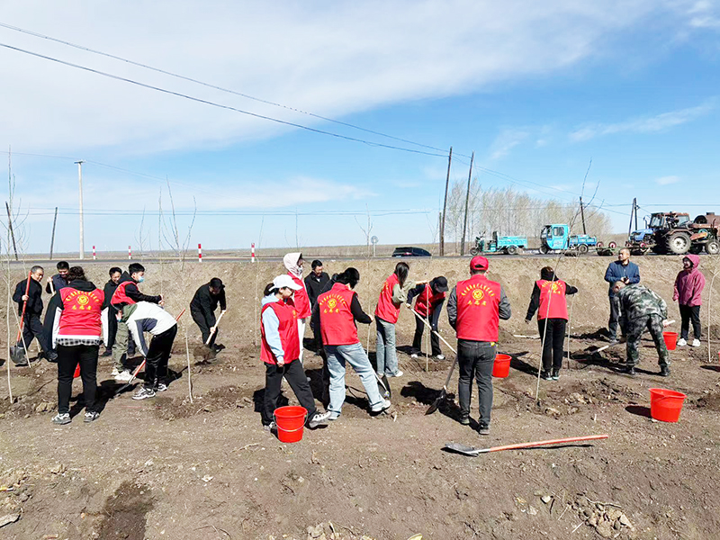 植樹現場一片繁忙,大家熱情高漲,配合默契,鏟土、扶苗、澆水、覆土分工明確,每一步都做得十分認真。經過大家的齊心協力,一株株樹苗錯落有致、迎風挺立,呈現出一派綠意盎然、生機勃勃的景象。