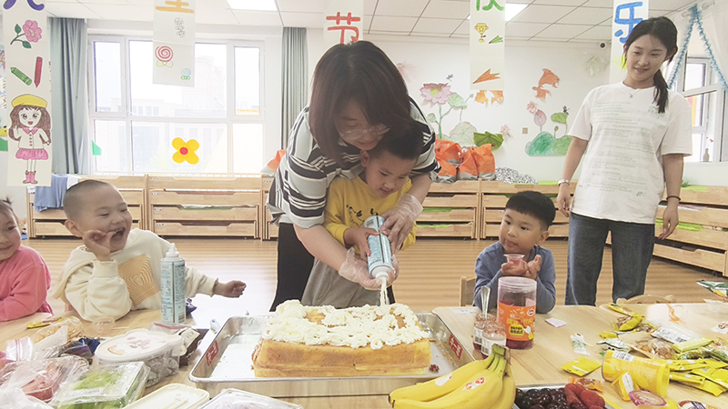 5月31日,『六一』國際兒童節即將到來之際,北林區第二幼兒園小朋友們將自己喜歡的奶油、果醬、水果裝飾在蛋糕胚上,與老師家長共同美化蛋糕,開心地完成了屬於自己的兒童節專屬甜蜜。品嘗自己親手制作的蛋糕,小朋友們的臉上洋溢著幸福的笑容。此次活動不僅讓150名小朋友們度過了一個充滿甜蜜和歡樂的『六一』,還鍛煉了他們的動手能力和創造力,讓家庭成員之間更加親密和融洽。