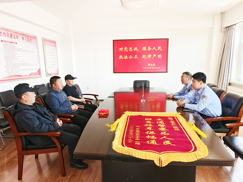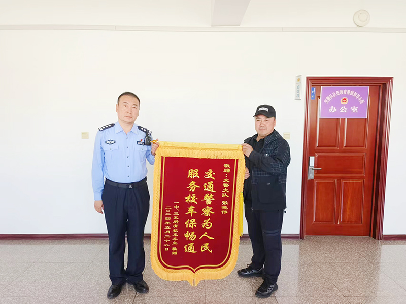 6月4日上午,三位校車車主將一面寫有『交通警察為人民服務校車保暢通』的錦旗送到肇東市公安局交通警察大隊,代表一中、三中所有校車車主感謝大隊民警想車主之所想、急車主之所急,積極主動幫助校車車主解決停車難問題。