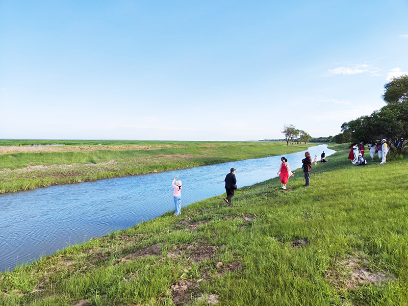 『我們昨晚就到這裡搭建了帳篷,這裡的自然風光太美了,這裡有樹林,草原還有美麗的濕地風光,當地政府還提供了游客安全保障,還有精彩的文藝表演,我們一大家子在這玩得很開心。』來自安達的游客曲靜對記者說。