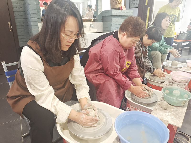 隨著對陶藝基礎知識的了解,女職工們迫不及待地投入到了陶藝實踐中。她們圍坐在陶藝臺前,雙手輕撫著陶泥,在老師的悉心指導下,小心翼翼地塑造著自己的作品,大家專注地捏著陶泥,發揮想象力,將心中的美好願景融入作品中。每一件作品都凝聚著女職工們的巧手智慧,也寄托著她們對家庭和諧、美好生活的向往。