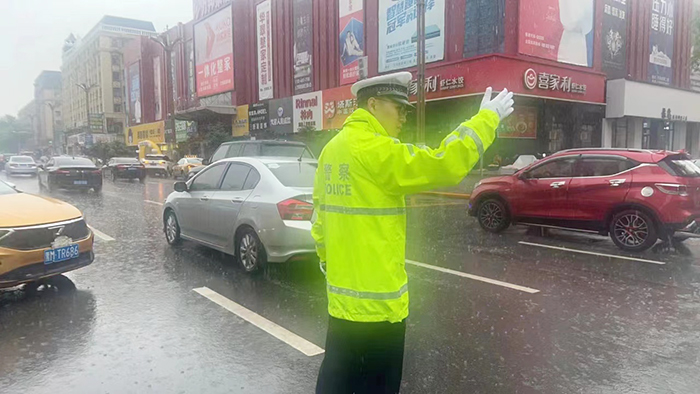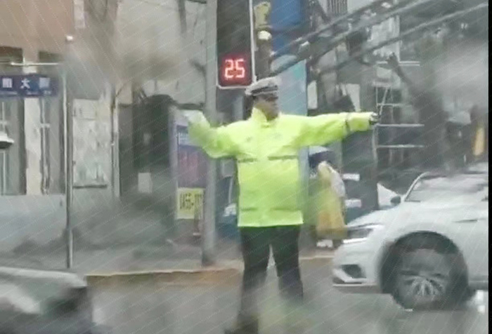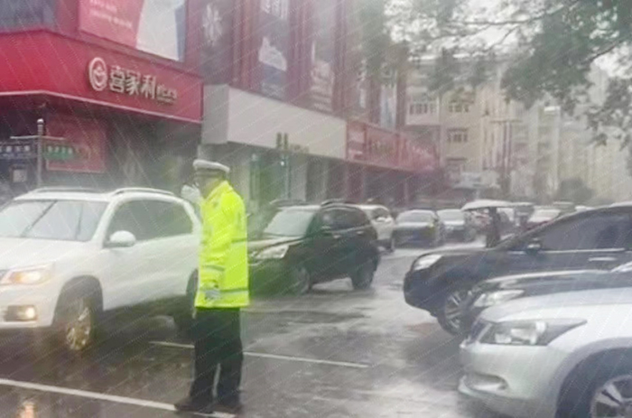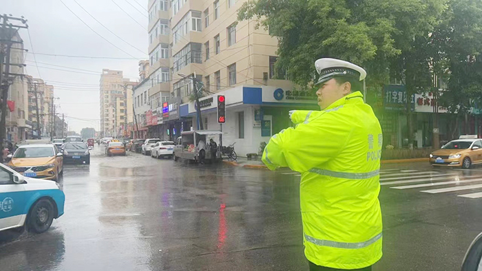 6月20下午,肇東市城區突降大雨,極端天氣造成城區主乾道多處積水。雨情就是警情,肇東公安交警主動出擊,積極應對,廣大執勤交警在傾盆大雨中堅守崗位,疏堵保暢,讓熒光綠在風雨中成為最溫情的城市路標。