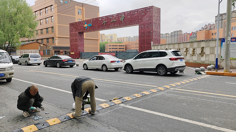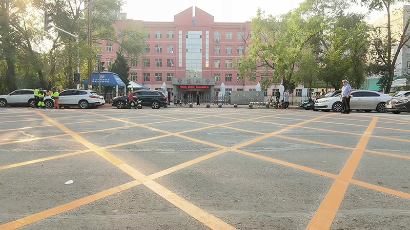 由於學校周邊車流量普遍較大,特別是上下學高峰期,接送學生的車輛及社會車輛交織,違規停車、違規超車現象時有發生,存在安全隱患。大隊領導看在眼裡急在心上,千方百計想措施。經過實地考察後制定整治措施,因地制宜,現場親自指導,分別在各中、小學校門前敷設減速帶、施劃醒目的白色斑馬線和黃色網狀線,並且施劃出校車專用停車位和學生專用通道,同時在學校門前的隔離墩上粘貼反光標識。