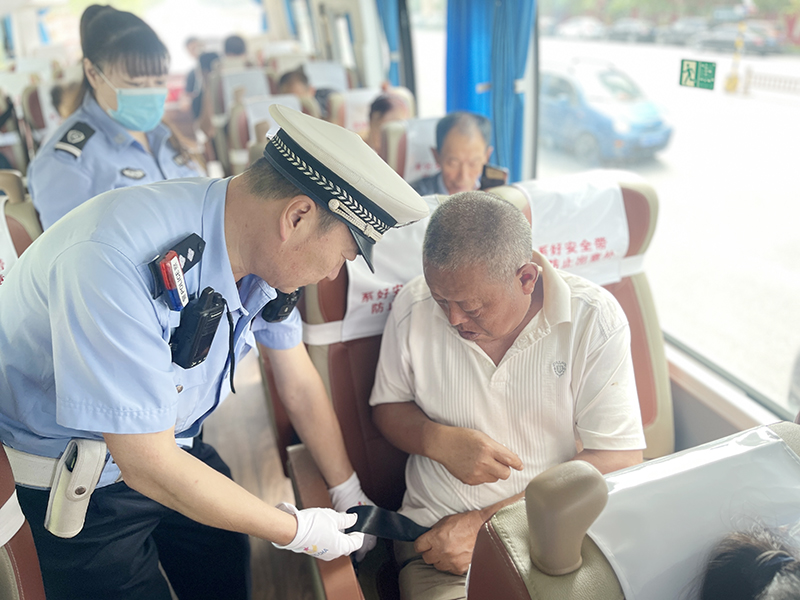 民警深入到客運車輛上逐一檢查了乘客的安全帶佩戴情況,對佩戴不正確的旅客進行耐心糾正,對個別沒有佩戴安全帶的旅客進行了嚴肅的批評教育。在檢查過程中,民警與乘車人面對面進行溝通,宣傳乘車人不系安全帶的有關法律法規知識,告誡廣大乘車人要時刻提高安全意識,使廣大群眾充分認識到汽車安全帶又被稱為『生命帶』的重要意義。