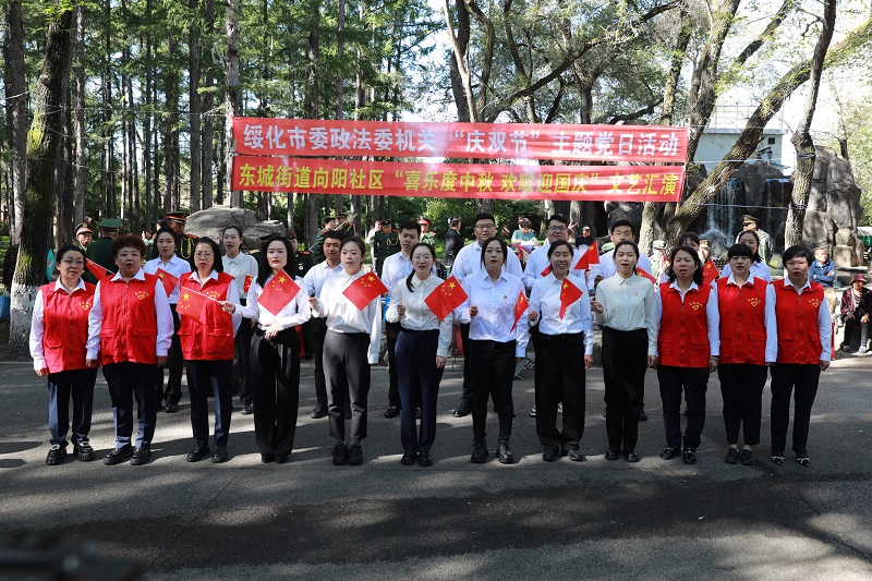 東北網綏化9月18日訊(全媒體記者 宋博文)9月13日,市委政法委聯合北林區東城街道向陽社區在市人民公園開展『喜樂度中秋歡歌迎國慶』主題黨日活動,加強政法委機關黨員乾部與包聯社區的聯系交流。
