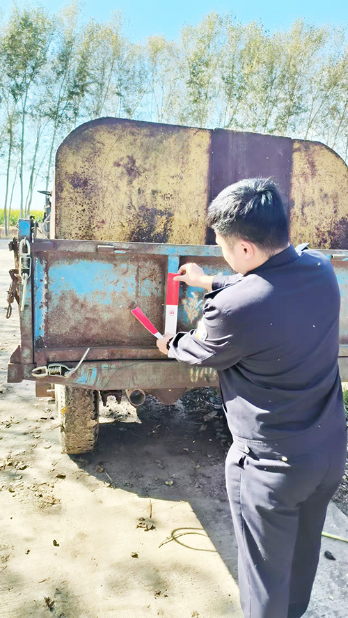 工作中,民警深入田間地頭和農戶家中,與農戶面對面貼心交流,拉近了民警與農戶之間的距離,及時調解解決農戶在秋收工作中遇到的困難問題,實現矛盾糾紛『排得出、化得掉、控得好』工作目標,切實把矛盾糾紛化解在萌芽狀態。巡邏中,民警為反光標識不全、不清晰的車輛粘貼反光標識,提醒駕駛員遵守交通規則,禁止農用車違法載人等,為秋收作業營造安全暢通的道路交通環境,預防和減少各類道路交通事故的發生。