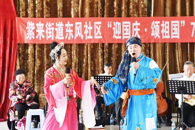 近日,北林區紫來街道辦事處東風社區黨總支為慶祝新中國成立75周年,組織轄區居民群眾開展『迎國慶頌祖國』文藝演出,豐富居民業餘文化生活,不斷提高居民群眾的幸福感、獲得感。