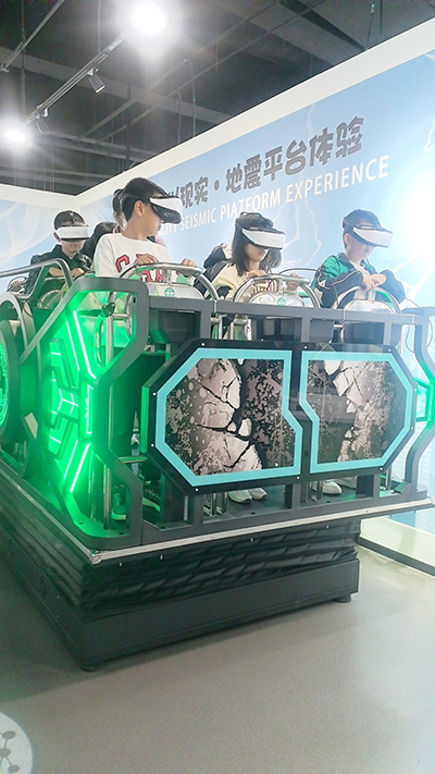 圖為參觀人員體驗地震平臺項目。 全媒體記者 沈雪 攝