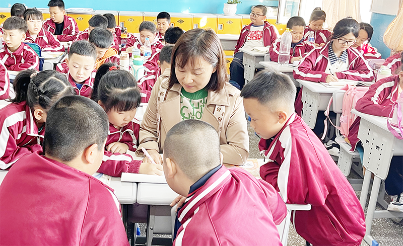 2023年秋季開學,班級從外地轉來一個女孩小爽。誰知,第二天早上孩子就不肯來上學,到校後也時不時吵鬧著要找媽媽。通過和家長溝通,纔知道小爽原來和姐姐同校住宿,這次和姐姐分開了,心理上非常抵觸,怎麼疏導都無濟於事。無奈媽媽只好放棄工作專門照顧她,吳海強也每天早早到校門口接小爽。情況稍有好轉,但幾天後,孩子又開始鬧起來。一天,吳海強正講課時,王爽忽然從座位跑出來,衝向門口。吳海強連忙拉住她,將她抱在懷裡。待她的心情有所平復後,吳海強把小爽送回座位。但小爽又開始撕書,把本子都扔到地上……折騰一番無果後,吳海強讓她把撕壞的書和作業本都撿起來,然後允許她和她媽媽通電話。吳海強終於發現了轉移她注意力的好辦法,平時安排她收收作業、檢查作業、掃掃地、上辦公室跑跑腿,同學們也都默契地配合小爽的『工作』。就這樣,小爽在潛移默化中漸漸融入進了班集體,並成了語文高效課堂上的活躍學生。今年全縣教師節慰問演出,小爽還登臺進行了詩朗誦領誦。