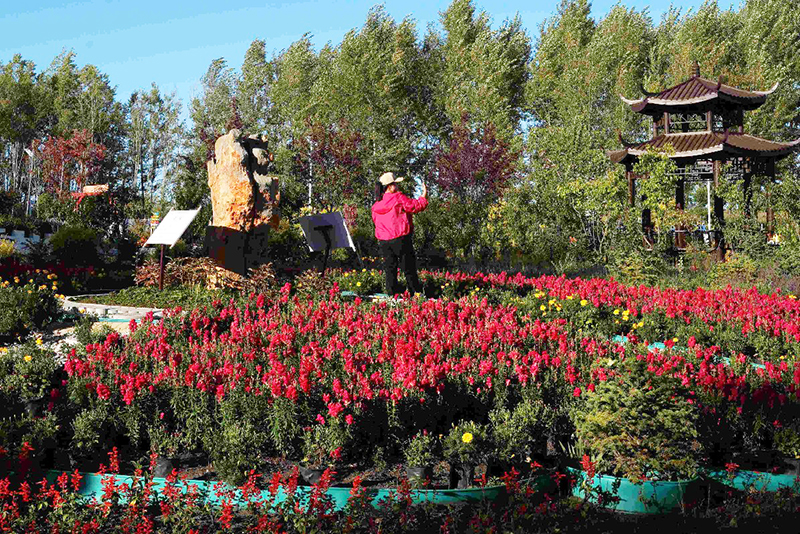 道路旁邊不止有鮮花圍繞的戰勝村,還有共榮鎮進步村的艷陽天花谷景區。這裡有許多自然和人文景觀,景區內的花朵在陽光的照射下,更加奪目,不時有人在花間觀賞和留念。