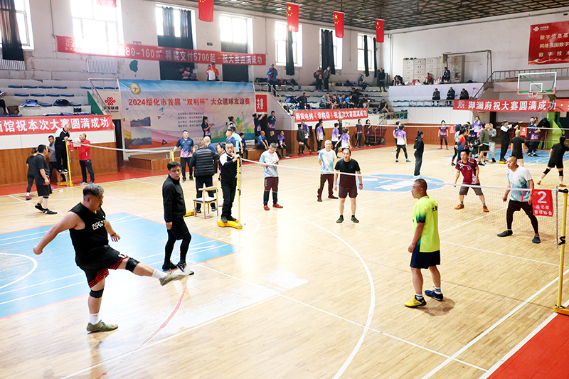 10月13日,2024年綏化市首屆『雙利杯』大眾毽球友誼賽在北林區體育館舉行。來自綏化市、黑河市、巴彥縣、鐵力市的17個毽球協會41個隊伍160人角逐青年男子組、青年女子組、中年男女混合組的比賽,經過100多場激烈角逐,巴彥縣雙利養殖場毽球隊獲得青年男子組冠軍,巴彥縣雙利養殖場毽球隊獲得青年女子組冠軍,北林區毽球協會三隊獲得中年男女混合組冠軍。