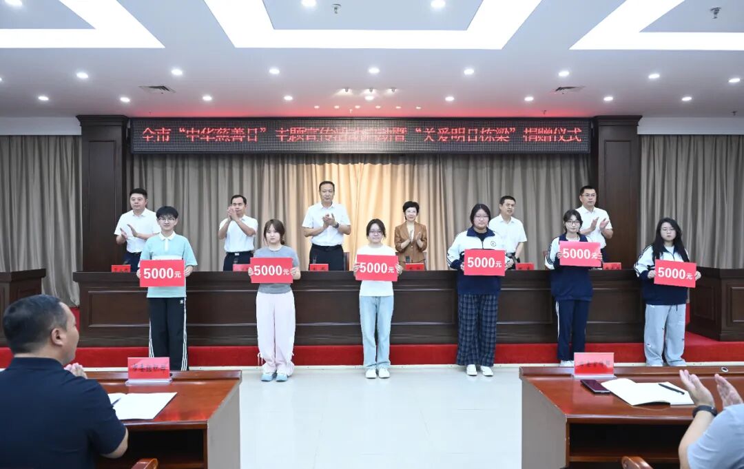 捐贈儀式上市民政局副局長李志偉宣讀《綏化市2025年『中華慈善日』主題宣傳活動實施方案》,市教育局局長羅文明宣讀《致受助學生和家長的一封信》,與會領導為受助學生發放助學金,市第一中學邢棟同學作為受助學生代表發言。
