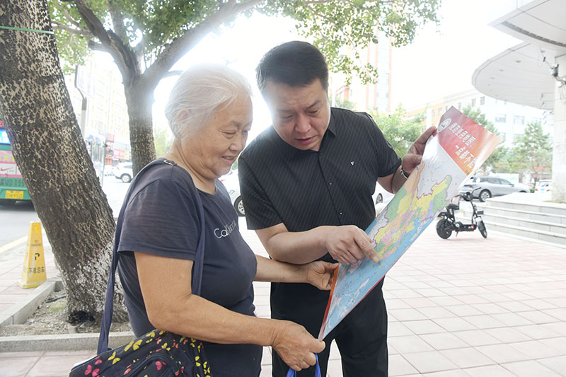 8月29日,市自然資源局工作人員在向市民講解規范使用地圖知識。