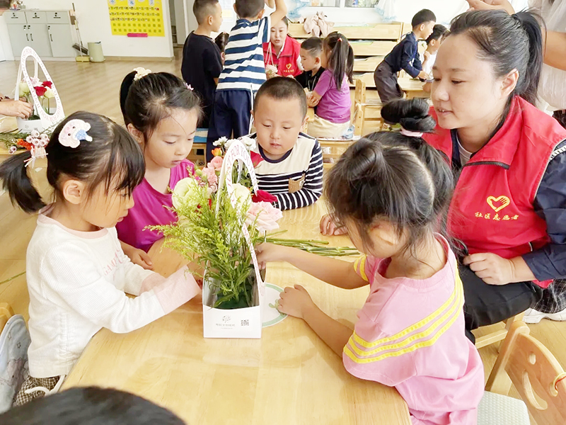 9月9日,在第41個教師節來臨之際,北林區康莊街道西湖社區走進北林區第二幼兒園,開展『情暖教師節花香敬園丁』插花活動,為默默耕耘的教師們送上一份節日祝福。