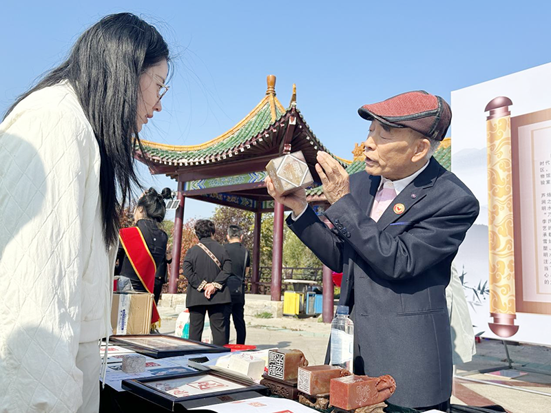 文創非遺精品展區是文化的盛宴,明水面塑、剪紙、秸稈編織、篆刻等非遺技藝引人駐足,『雪娃寶寶』系列組合擺件、主題文創水杯等創新設計產品也備受青睞。非遺互動體驗區更是熱鬧非凡,非遺傳承人現場展演教學,不少年輕人上手體驗,在互動中感受黑土地上的文化脈動。