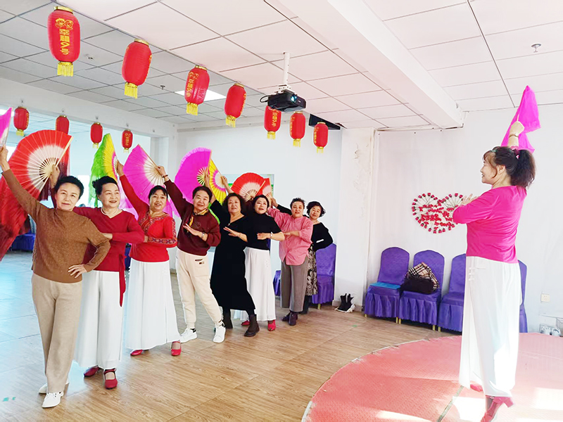 明源社區不僅鼓勵志願者與高齡老人結成『忘年交』,通過定期上門聊天、電話微信聯系給予情感關懷,還依托『幸福9號』社區養老模式,打造『15分鍾養老服務圈』,為老年人搭建起豐富的精神文化平臺。定期組織『銀發課堂』、文藝表演、文化講座等活動,由有特長的低齡老人教舞蹈、歌曲、書法等,豐富老人們的精神文化生活,讓老年人在『家門口』就能享受多元文化服務,在老有所養中實現老有所學、老有所樂。