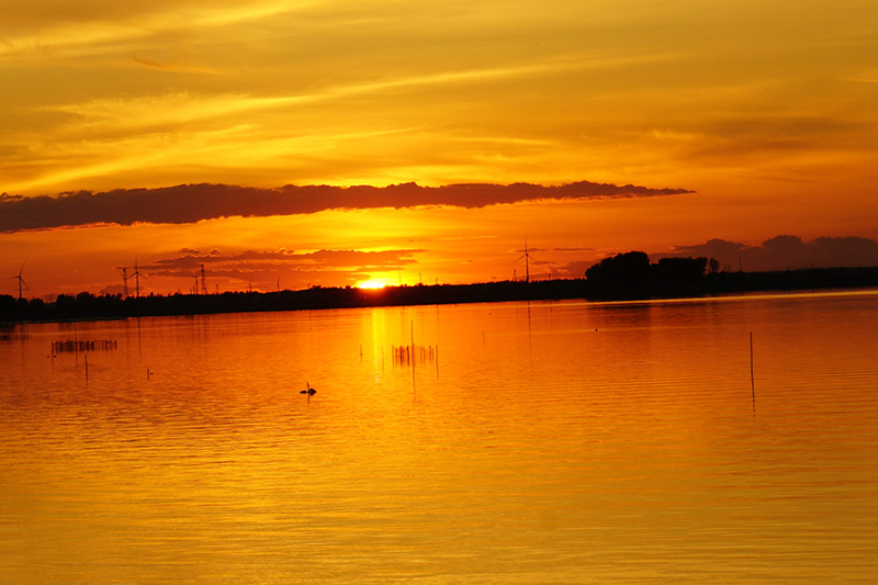 日落時的色彩深受人們的喜愛,水邊的黃昏更是迷人,位於望奎縣的西窪荒濕地自然保護區便是如此。9月19日,記者來到這裡,記錄下日落時的美麗風景。水天一片金色,蘆葦、漁舟、漁網、飛禽等構成一幅幅美麗畫卷。迷人的日落也吸引許多游客來此打卡拍照。