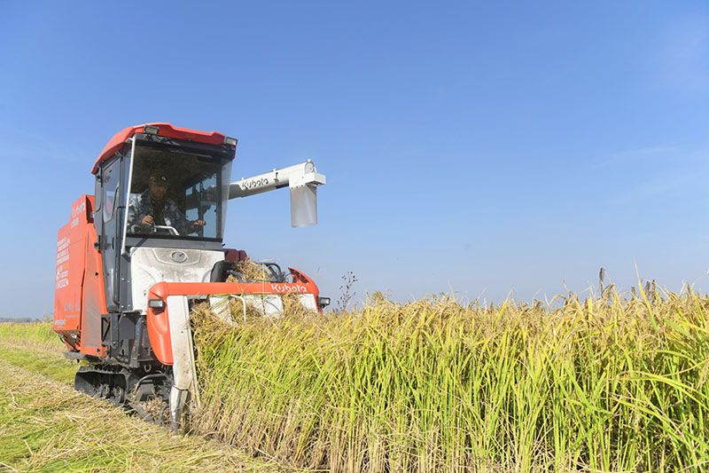 收割機的轟鳴聲在田野裡歡快地奔騰,奏響秋日裡最動聽的樂章。金色的稻谷如瀑布般傾瀉,豐收的喜悅,沈甸甸地掛在每一株稻穗上,也輕盈地飛揚在每一位農人的眉梢。大家彎腰捧起稻米時,眼底漾開的笑意,比秋陽更暖,比蜜糖更甜——這是一年辛勞過後,最踏實、最酣暢的喜悅。
