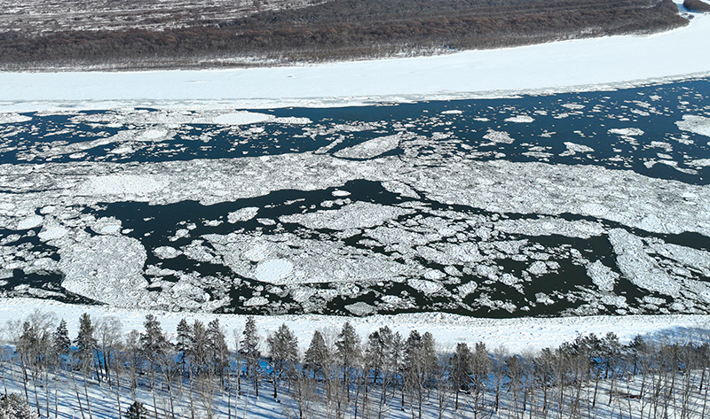 11月2日拍攝的黑龍江呼瑪段『跑冰排』景象(無人機照片)。 近日,黑龍江乾流各江段陸續進入流冰期,江面上形成壯觀的『跑冰排』景觀。