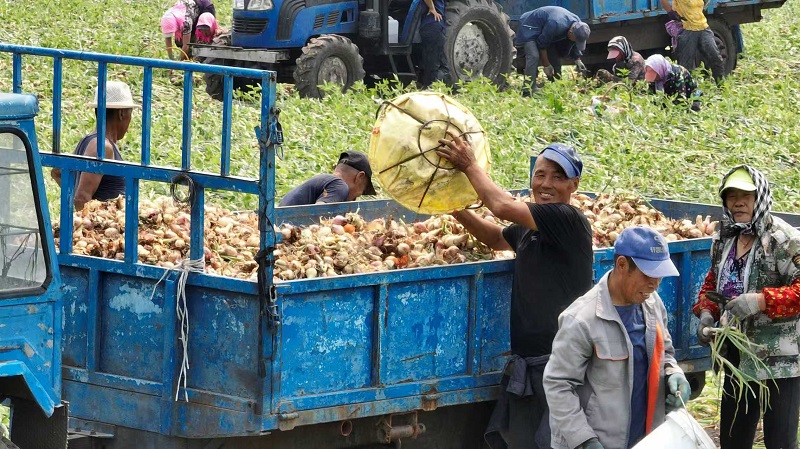 據當地種植戶介紹,毛蔥種植曾因分散種植、品種退化等問題制約產業發展。農戶各自為戰導致規模效應缺失,傳統品種抗病性差、產量低,難以滿足市場需求。中際公司以三大創新經營模式破局,將資源優勢轉化為產業優勢,通過『企業+合作經濟組織』模式,為農戶提供優質種子與技術指導,夯實種植基礎。從選種育苗到田間管理,公司全程參與,確保毛蔥品質穩定。