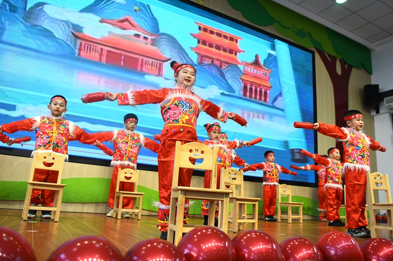 2025年12月31日,黑龍江省綏化市北林區第三幼兒園的小朋友在表演歌曲《中國范兒》。