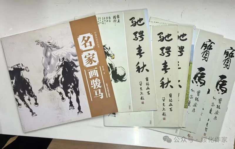 那時,他隨身攜帶速寫本,走到哪畫到哪。無論是在田間地頭,還是在草原牧場,他都能迅速捕捉到馬的精彩瞬間。晚上回家後,他再對照速寫研究馬的結構和解剖,將速寫中生動的動態整理成小稿。幾十年的畫馬歷程中,他的速寫積累了幾十本,工作室保存下近千張小稿。這些速寫和小稿,不僅是他藝術成長的見證,更是他對馬深深熱愛的體現。2012年,他整理畫稿,出版了《徐寶銘畫馬》一書,對自己以往的畫馬小稿進行了系統梳理總結。這本書,如同他藝術人生的一座裡程碑,記錄著他從青澀到成熟的蛻變。