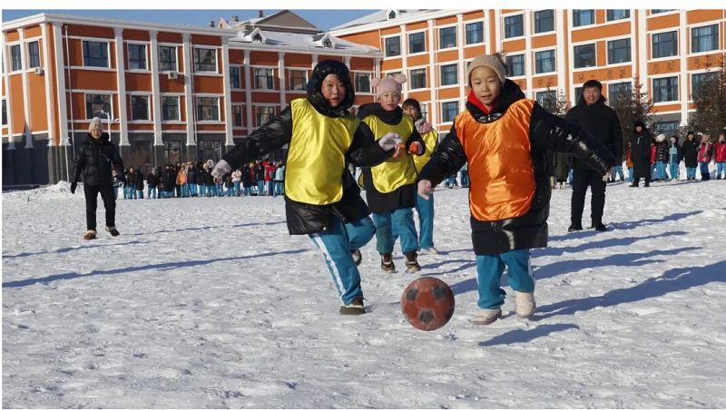 校園操場銀裝素裹,吶喊聲與歡笑聲此起彼伏,雪地賽場在冬日寒風中熱火朝天。明水濱泉鳳亭小學以『冰雪少年·亞冬傳承』為主題舉辦了雪地足球與雪地拔河比賽,讓孩子們在漫天飛雪中感受運動激情,傳承拼搏精神。