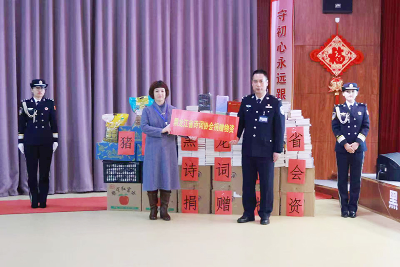 現場,省詩詞協會向戒毒人員捐贈了一批優質詩詞書籍,為他們感受文化魅力打開窗口;綏化強戒所向胥春麗及肇東詩詞學會李軍贈送錦旗,並向愛心詩人代表頒發紀念證書,以此感謝省詩詞協會及愛心詩人對戒毒工作的大力支持。