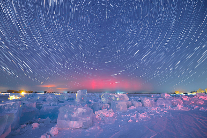 1月20日在黑龍江省齊齊哈爾市拍攝的絢麗極光(堆棧合成照片)。 新華社發(