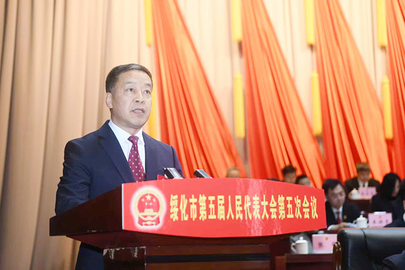 在熱烈掌聲中,陳立軍向大會作市政府工作報告。