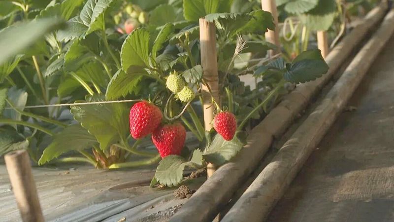 富硒草莓以安全、健康為宗旨,采用有機種植模式,用有機肥來代替化肥,這樣草莓的口感比較好,顏色也比較正,個頭也適中。付成和說:『今年一共種了5個大棚的草莓,主要品種是九九草莓。土壤中添加了富硒元素,現在草莓陸續成熟了,一直能采摘到明年6月份。』