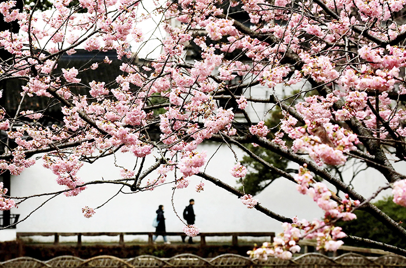 3月2日,游客在江蘇省蘇州市拙政園賞櫻游玩。 新華社發 (