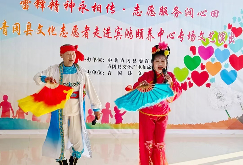 東北網綏化3月10日訊 ( 閆海 ) 3月4日,青岡縣文體廣電和旅游局組織近百名文化志願者走進賓鴻頤養中心,開展以『雷鋒精神永傳頌志願服務暖心田』為主題的慰問活動,為老人們送上了一道文化大餐,以實際行動傳承雷鋒精神。