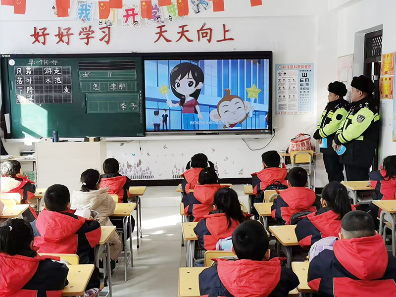 根據學生的接受和理解能力編撰了教案,播放了交通安全知識專題片,緊緊圍繞『知危險、會避險、懂安全』主題,細致講述了發生在身邊的交通事故案例,剖析並強調了小學生隨意橫穿公路、上放學途中嬉戲打鬧、乘坐車輛將頭、手等身體部位伸出窗外,乘坐農用車、三輪車、兩輪摩托車不戴安全頭盔等交通陋習的嚴重危害。交警們邊講課邊與學生們互動,采取交警提問、學生回答,學生提問、交警解答的方式,活躍了授課氣氛,增加了學生的學習興趣,加深了學生對交通安全常識的理解;發放了交通安全知識手冊,面對面逐條逐項進行講解,加深了學生對交通安全常識的理解和應用。