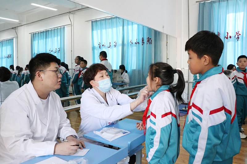 在縣五保供養中心,醫療專家為老人開展心腦血管疾病健康科普,講解疾病預防與日常保健知識。醫護人員逐一為老人測量血壓、血糖,細致問診、耐心答疑,詳細了解老人飲食、睡眠及用藥情況,用專業服務溫暖老年群體。在鳳亭小學,專家團隊圍繞傳染病預防、口腔保健、科學用眼等內容開展科普講座,與孩子們互動交流。醫護人員為學生進行視力篩查、口腔檢查,針對性糾正讀寫姿勢,引導大家科學用眼、愛護牙齒,增強健康防護意識。